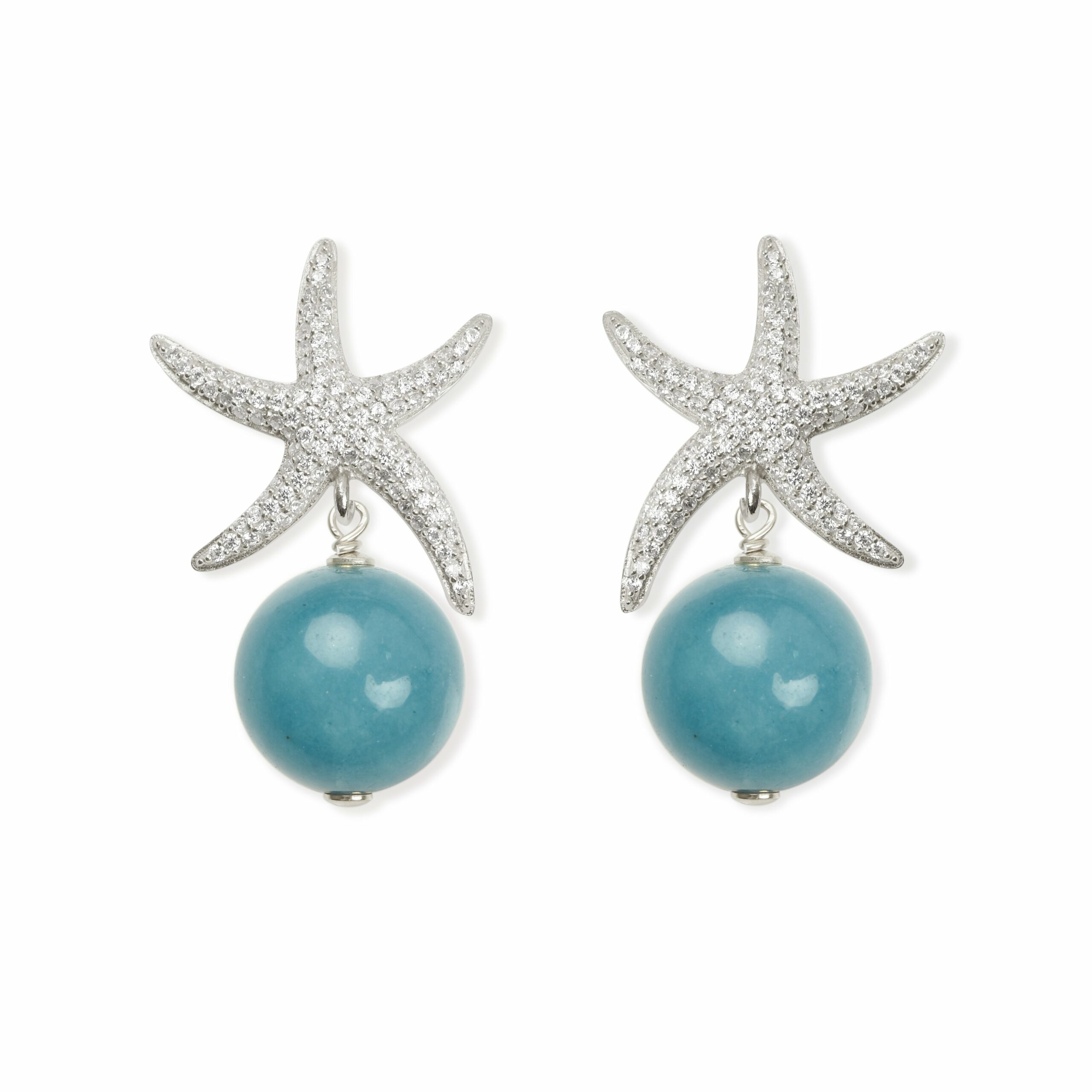 Gold plated 925‰ sterling silver earrings, light blue agate, zircons