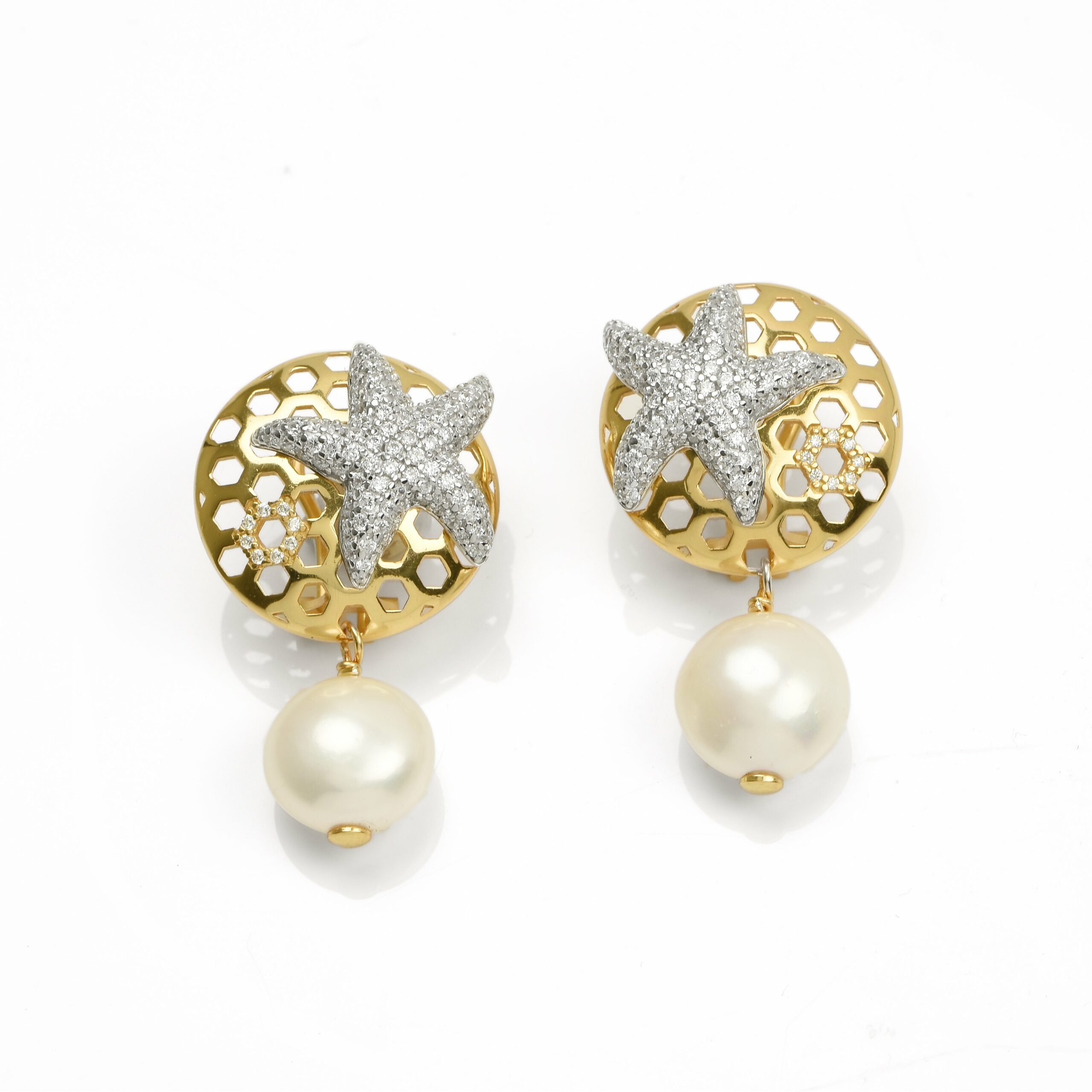 Gold plated 925‰ sterling silver earrings, freshwater pearls, zircons